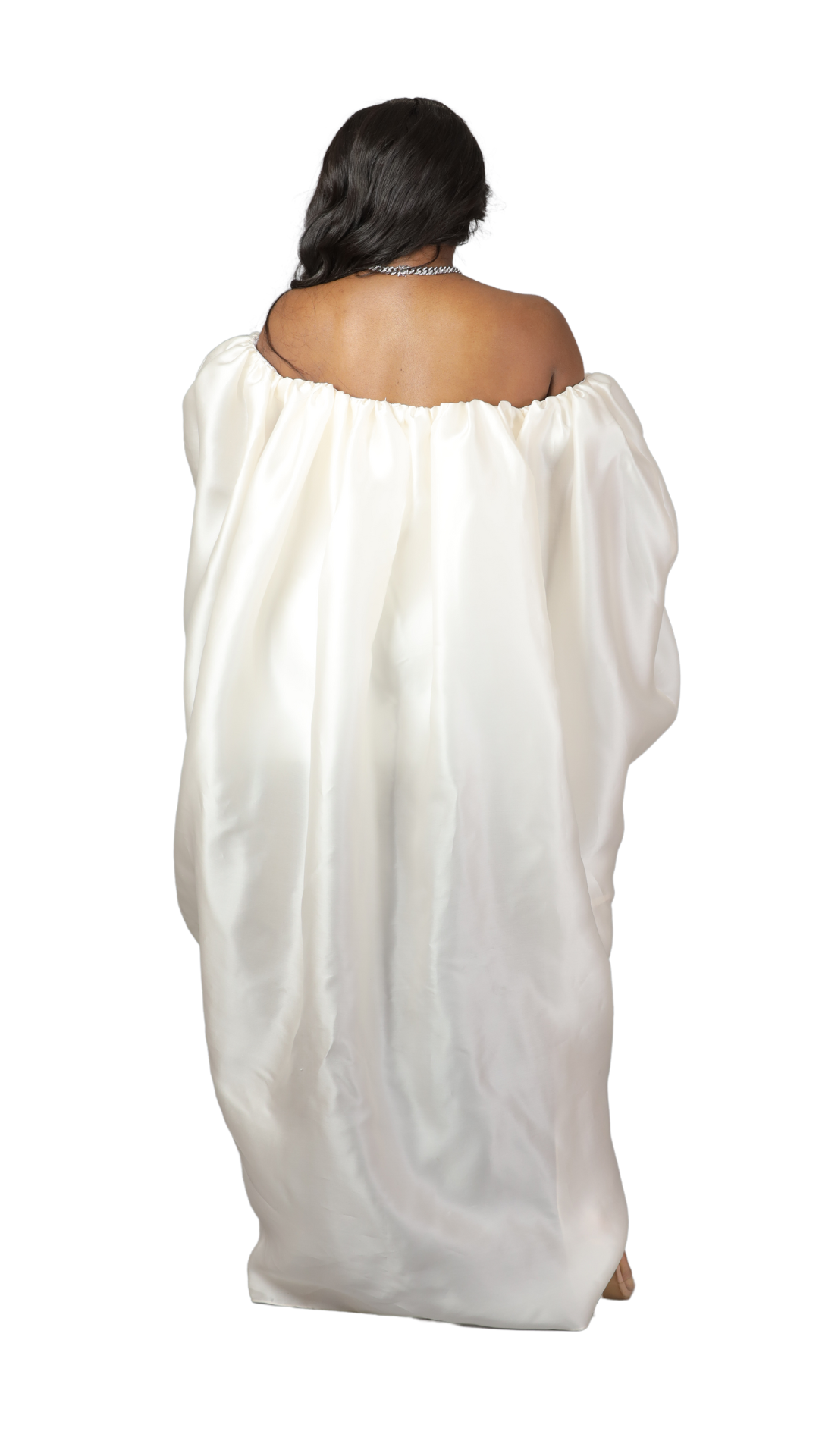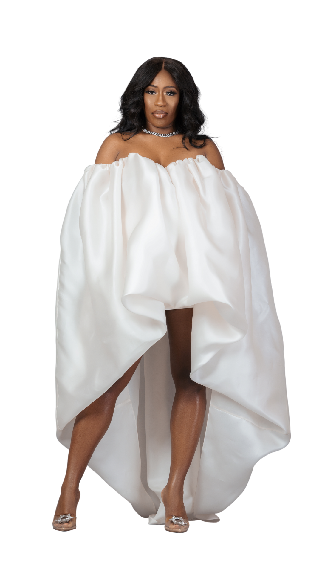 Off-Shoulder dress with gathered and draped detail, high-low hem
